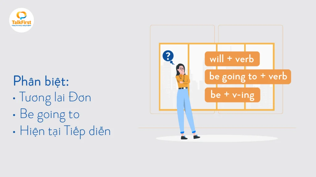 Trong bài học hôm nay, TalkFirst sẽ giúp bạn hiểu rõ cách phân biệt thì Tương lai Đơn, cấu trúc Be going to và thì Hiện tại Tiếp diễn một cách chi tiết nhất!